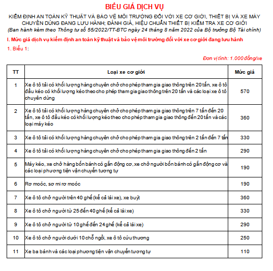 3. Kiểm định xe cơ giới để cấp Giấy chứng nhận kiểm định an toàn kỹ thuật và bảo vệ môi trường (có thời hạn không quá 15 ngày) thu bằng 100% giá quy định tại Biểu 1.