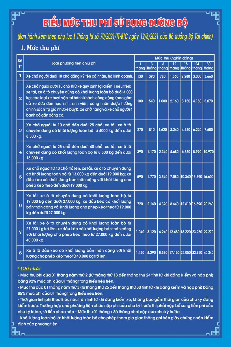 PHÍ SỬ DỤNG ĐƯỜNG BỘ